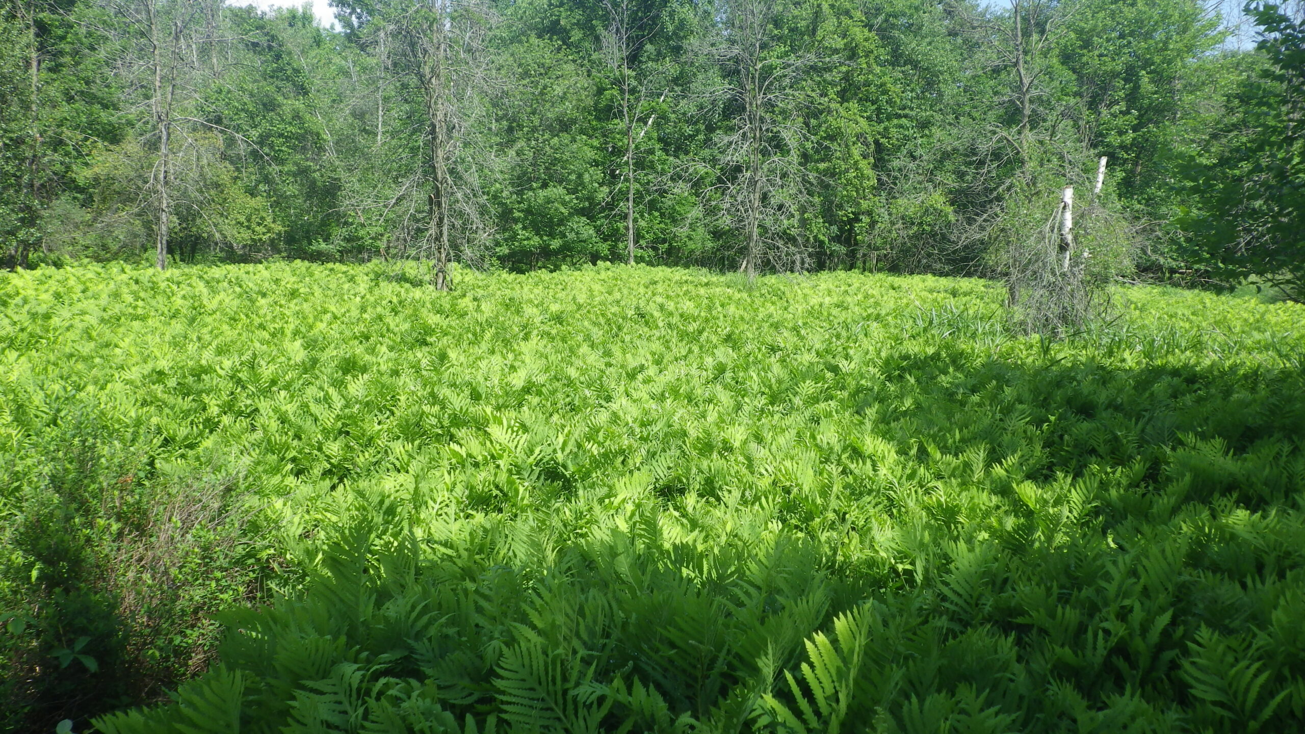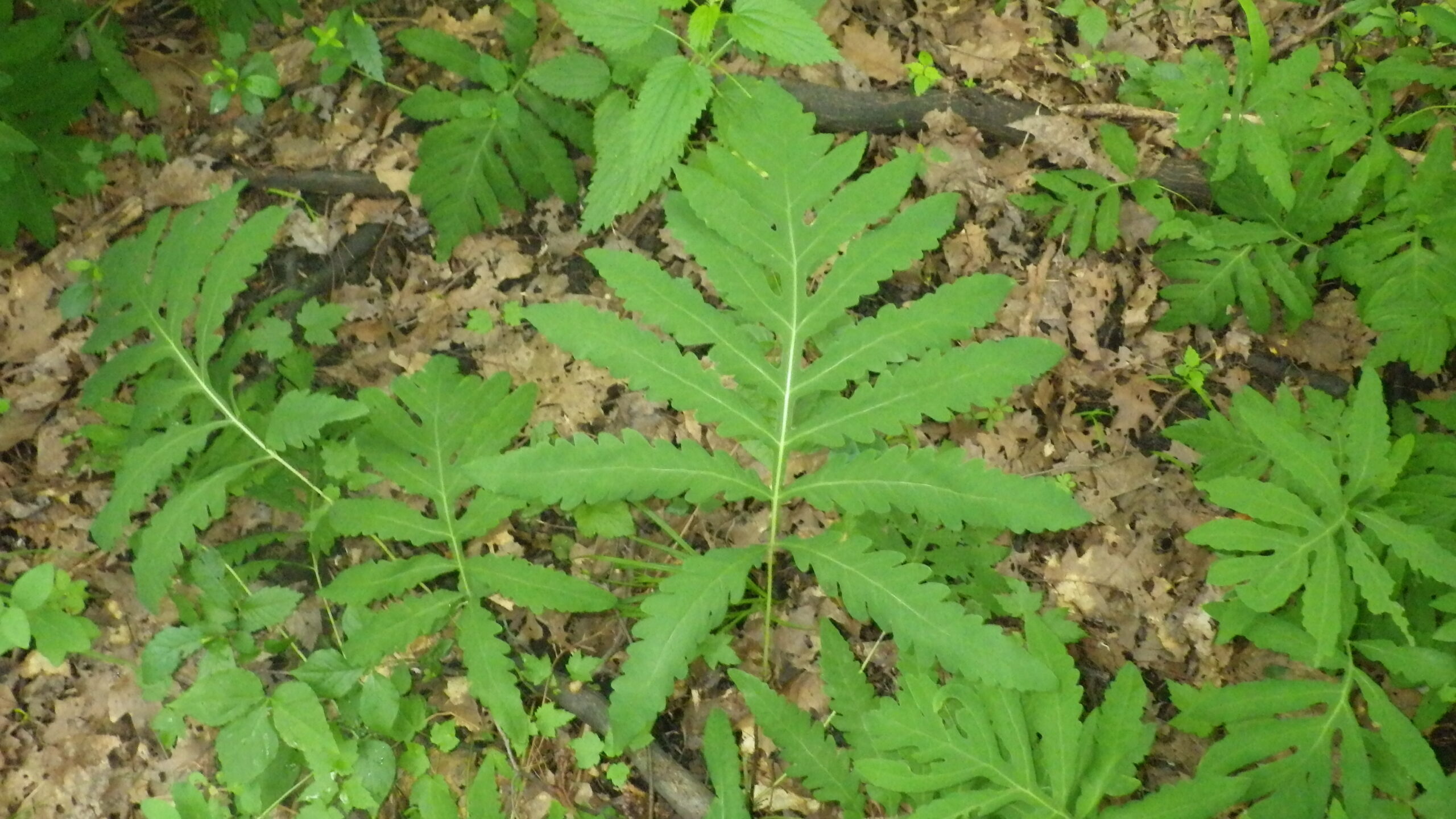 Fougère ayant une fronde végétative triangulaire (30-100 cm) non ramifiée et une fronde fructifère automnale qui perdure en hiver et qui est facile à remarquer avec ses couleurs noirâtres en contraste avec le blanc de la neige. Forme de grandes et denses colonies.