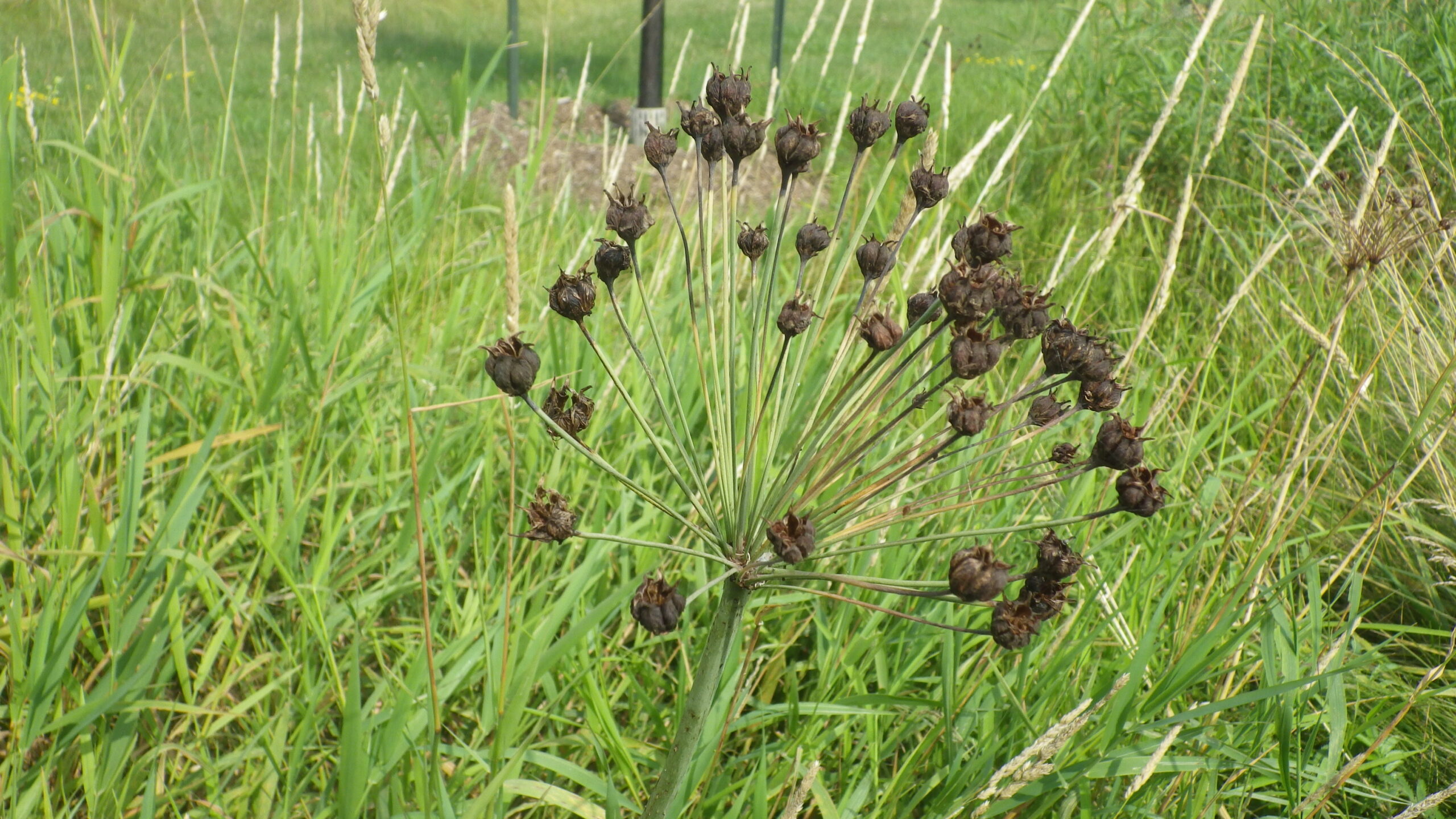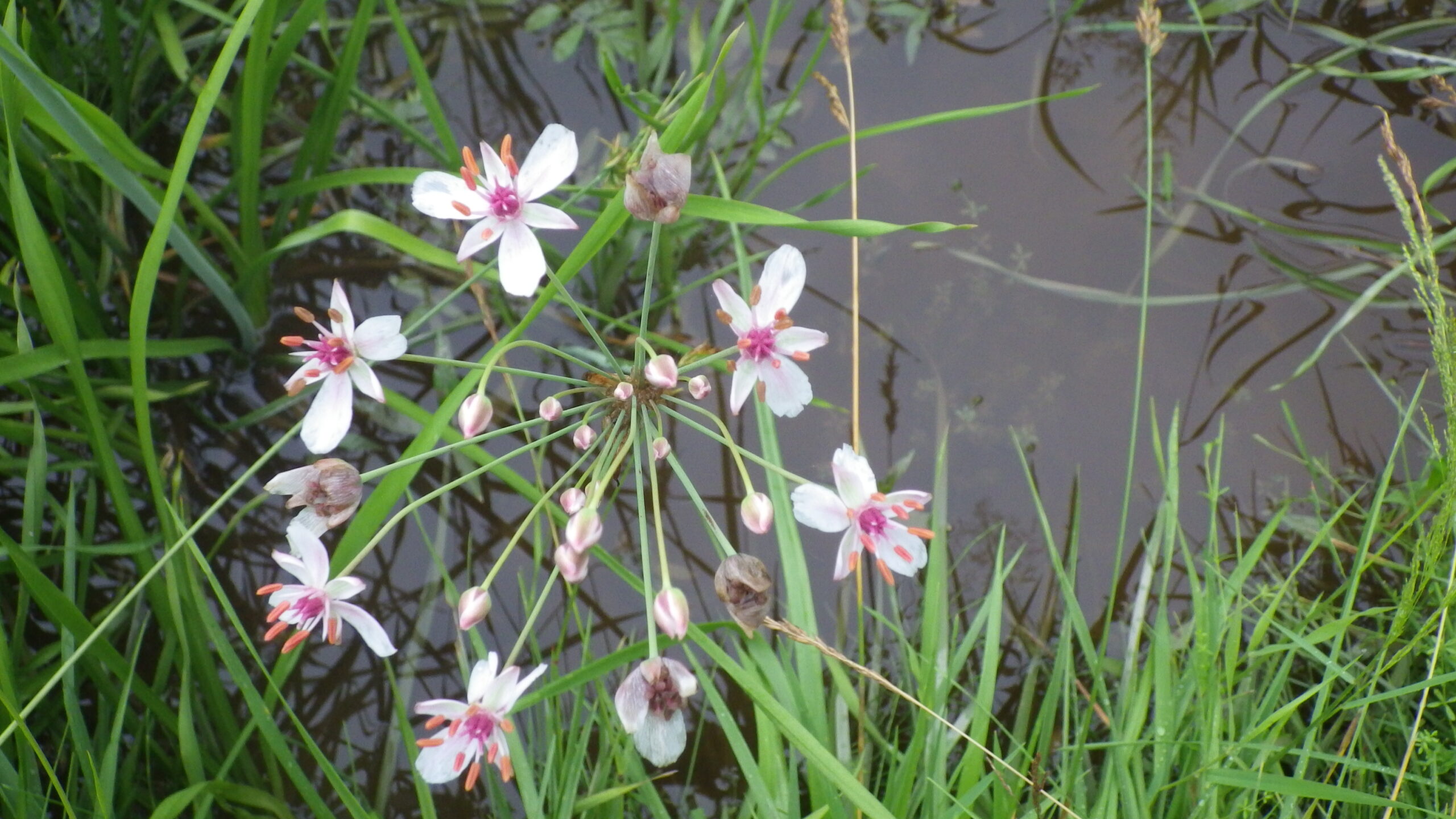Plante herbacée (30-100 cm), vivace, qui ressemble à un jonc ayant des fleurs, d’où son nom populaire de “Jonc fleuri”. Fleurs roses dont les queues sont de longueur différente. Pousse en colonies. Floraison tout l’été suivant le niveau de l’eau.