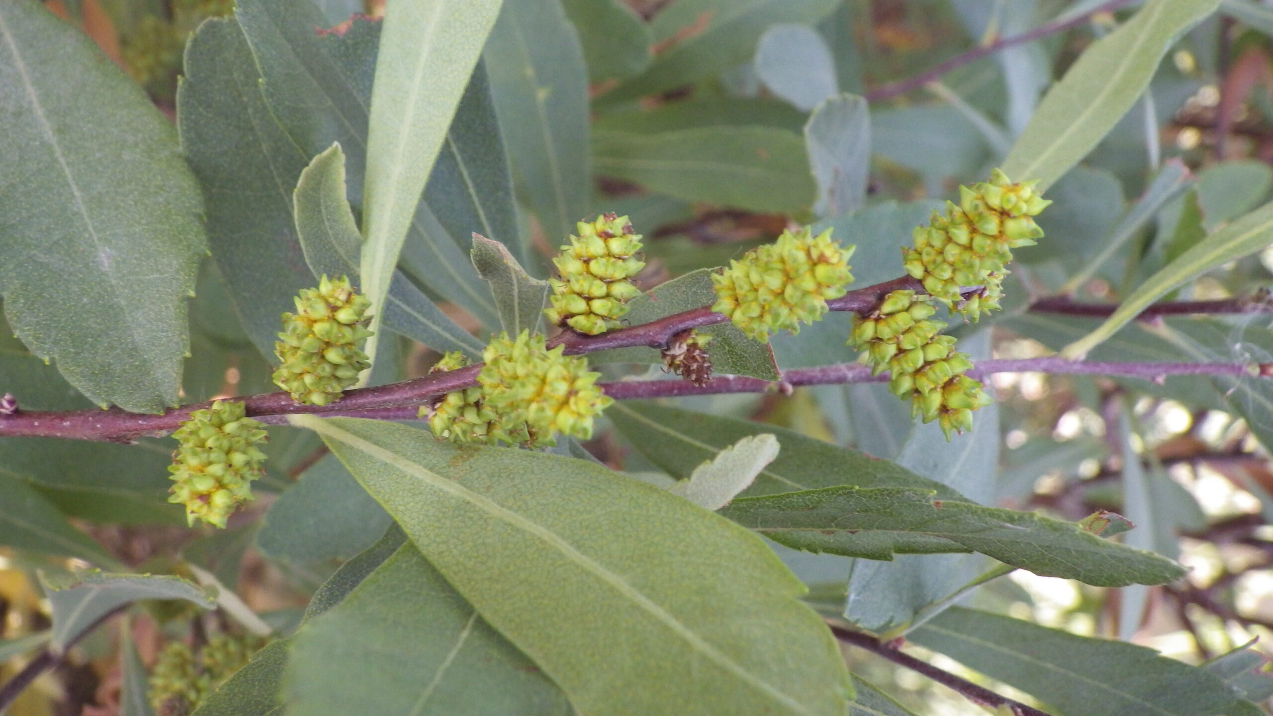 (fleurs mâles) et chatons pistillés (fleurs femelles) sont sur le même arbrisseau mature. Les jeunes plants ne produisent généralement que des chatons staminés.