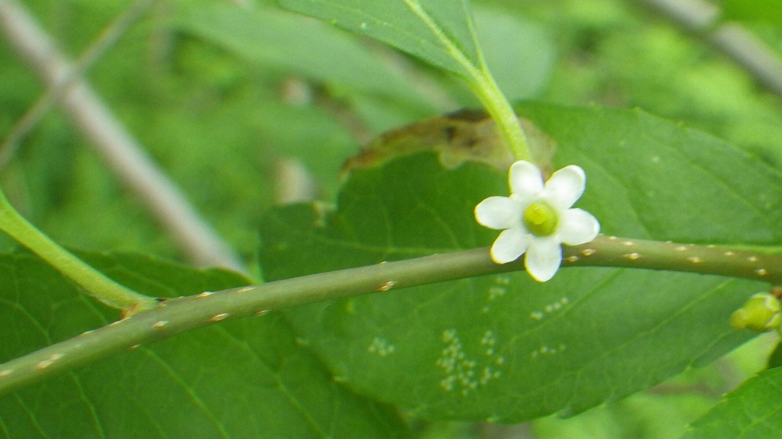 Arbuste (2-8 m) ; feuilles alternes, simples, ovales et aiguës au sommet. Floraison en juin et juillet. Chaque arbuste possède soit des fleurs mâles, soit des fleurs femelles, très petites et blanches dans les deux cas. Fruits d’un rouge vif.