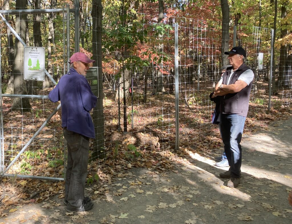 Les bénévoles des Amis du parc Michel-Chartrand ont organisé une marche guidée sur une partie de la piste des arbres pour leurs membres le 4 octobre 2025.